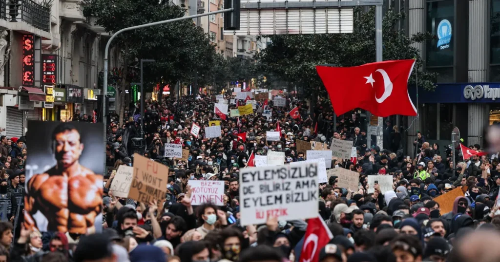 Video footage showed people attempting to extinguish flames inside the tent following the strike