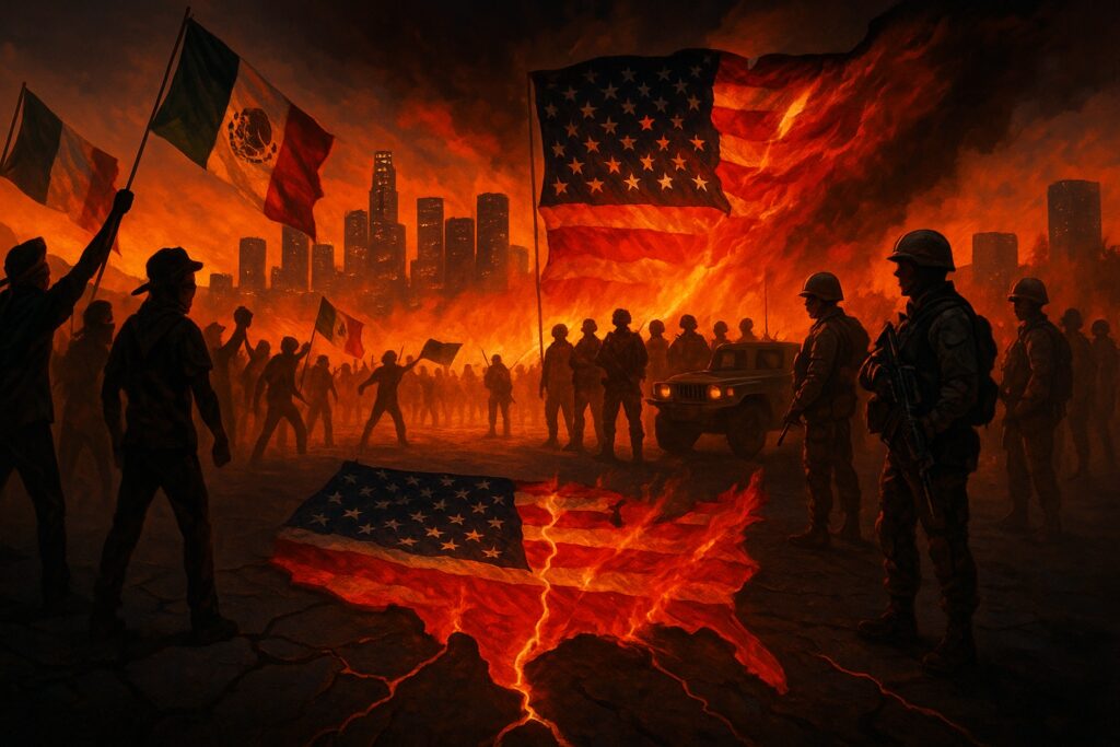 The signs of a nation inching toward internal conflict are everywhere. From fiery street clashes and racial riots to heavily armed citizens preparing for doomsday, it’s as if the American experiment has been rigged with a powder keg from the start. We Americans cherish our freedoms and our Union – “one nation under God, indivisible” – yet deep fault lines of race and ideology run through our society like lit fuses. Haven’t you realized yet? America was designed to implode. This isn’t a conclusion reached lightly, but a warning born of recent evidence: a country primed for internal conflict by virtue of its own legal and social DNA. Two combustible ingredients stand out – deeply rooted racial divisions and widespread firearm ownership – both embedded in our history and laws, both now threatening to ignite an era of chaos. Locked, loaded and ready On April 29, 1992, Los Angeles erupted in flames and fury. The acquittal of four white police officers caught on video brutally beating black motorist Rodney King sparked one of the deadliest urban uprisings in American history. Over several days of rioting, more than 50 people were killed and 2,300 injured, with about $1 billion in property damage to some 1,100 destroyed buildings. The 1992 LA riots shocked the world – a violent outpouring of racial anger that seemed to catch America’s vaunted “melting pot” at its boiling point. But it wouldn’t be the last such explosion. Fast forward nearly three decades: in 2020, protests over the murder of George Floyd once again devolved into arson and looting across 140 U.S. cities. The unrest from May 26 to June 8, 2020 resulted in an estimated $1–2 billion in insured property damage nationwide, eclipsing even the toll of 1992. In other words, America’s costliest riots on record are not relics of the 1960s – they happened just a few summers ago. The pattern is painfully clear: racial grievances, long simmering, can and will erupt into violence that scars our cities for a generation. June 2025: Los Angeles lights the fuse again And now – this very month – Los Angeles is burning once more. Whatever label one prefers, the optics are unmistakable: American flags in ashes, Mexican banners in the air, federal agents in gas masks, and armed soldiers patrolling the same streets that burned in 1992. The cycle is repeating – but this time the grievance narrative is explicitly trans-national, even secessionist, and it is colliding head-on with an uncompromising federal crackdown. These episodes of unrest are not random; they are evidence of racial fault lines that run deep through American society. Despite real progress since the civil rights era, de facto segregation and mistrust persist. Nowhere is this more stark than inside America’s prisons – our society’s involuntary microcosms. Behind bars, racial separation is a grim daily reality. In many prisons, inmates self-segregate (or are informally segregated by officers) by race, an unofficial practice aimed at reducing interracial violence. Wardens have long justified separating prisoners by race as “necessary for safety” because major prison gangs like the Aryan Brotherhood, Mexican Mafia, and Black Guerrilla Family are organized strictly along racial lines. Until 2005, California even had an explicit policy of segregating new inmates by race for 60 days to prevent gang clashes – a policy struck down by the Supreme Court as unconstitutional. Yet even after formal “desegregation,” the reality remains that prison yards and cellblocks often operate on unwritten racial codes, with guards warily keeping rival racial gangs apart. Think about that: over 150 years since the Civil War, Americans in prison still band together by skin color for sheer survival. It’s a chilling indicator of how far racial polarization has burrowed into our social fabric. Outside the prison walls, everyday American life remains startlingly segregated and polarized by race – from our neighborhoods and schools to our politics. The racial polarization of political identity is especially pronounced. Black Americans vote overwhelmingly for Democrats (about 83% identify or lean Democratic, versus just 12% Republican), while a majority of White Americans lean Republican (56% GOP vs 41% Democratic) by recent counts. Hispanic and Asian Americans tilt Democratic on balance, though with more mixed allegiances. Our political parties have essentially sorted themselves on racial lines – one party drawing most of its support from white voters, the other heavily reliant on voters of color. Even our basic perceptions differ: polls show most Republicans believe racism is not a major systemic problem, while most Democrats (especially Black Democrats) see racial discrimination as a defining issue of our time (as numerous surveys have documented). We increasingly lack a shared reality on matters of race and justice, which makes sensible policy or reconciliation ever more elusive. Perhaps the most frightening harbinger of conflict is the rise of outright racial-nationalist and separatist ideologies at the fringes. For years, white supremacist groups have peddled fantasies of race war – a threat the FBI says remains the deadliest domestic terrorism danger. But today we also see inflammatory rhetoric on the extreme left and among some minority activists that plays directly into the “divide and conquer” narrative. Consider the astonishing scenes from Los Angeles just this week (June 2025): what began as protests against federal immigration enforcement turned into unrest with a decidedly ethnic-nationalist flavor. In the streets of LA, crowds of far-left demonstrators waved Mexican flags and claimed that Los Angeles “is actually Mexican” land. One prominent organizer of the protests, a local teacher and open Marxist, delivered a tirade on live TV calling for “a revolution to take land back from white racist people”. This wasn’t a fringe interne